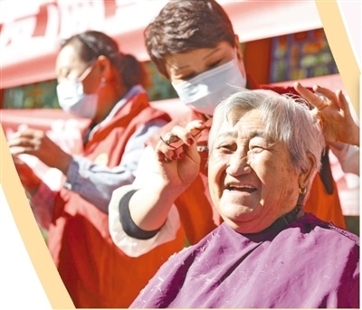 河北省唐山市豐潤區(qū)燕山路街道欣園社區(qū),志愿者為老人免費理發(fā)。朱大勇攝(人民視覺)