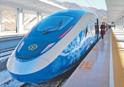 G9981次北京冬奧列車停靠在京張高鐵崇禮站。 新華社記者 鞠煥宗攝