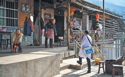 四川省北川羌族自治縣曲山鎮(zhèn)石椅村,村醫(yī)入戶走訪重點人群,提供醫(yī)療服務。 新華社記者 張超群攝