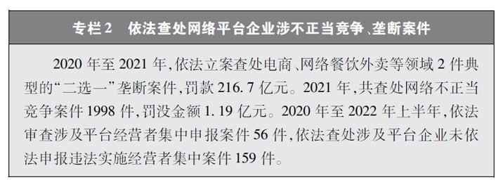 保障公平競爭的網(wǎng)絡(luò)市場環(huán)境。隨著網(wǎng)絡(luò)平臺企業(yè)不斷擴(kuò)展自身的體量和實力,“掐尖式并購”、無正當(dāng)理由屏蔽鏈接、“二選一”、大數(shù)據(jù)殺熟、流量挾持等妨礙市場公平競爭的問題也逐漸凸顯。中國積極回應(yīng)人民群眾訴求,在支持網(wǎng)絡(luò)平臺企業(yè)創(chuàng)新發(fā)展的同時,依法規(guī)范和引導(dǎo)資本健康發(fā)展,采取多種治理平臺競爭失序的執(zhí)法舉措。聚焦大型網(wǎng)絡(luò)平臺價格欺詐、低價傾銷等重點問題,通過行政約談、行政指導(dǎo)、規(guī)則指引等多種監(jiān)管手段,整治壟斷和不正當(dāng)競爭行為。圍繞民生、金融、科技、傳媒等重點行業(yè),依法審查涉及平臺經(jīng)營者集中案件,防止可能妨礙市場競爭和創(chuàng)新發(fā)展的并購行為,引導(dǎo)網(wǎng)絡(luò)平臺企業(yè)增強(qiáng)合規(guī)意識,規(guī)范自身經(jīng)營行為。通過一系列行動,平臺經(jīng)濟(jì)市場環(huán)境不斷優(yōu)化,公平競爭的行業(yè)生態(tài)穩(wěn)步向好,中小企業(yè)獲得更廣闊的發(fā)展空間,統(tǒng)一、開放、公平、競爭、有序的網(wǎng)絡(luò)競爭環(huán)境正在形成。