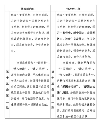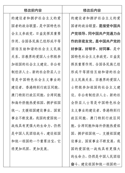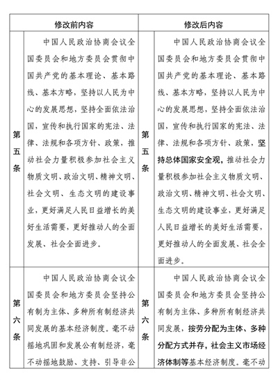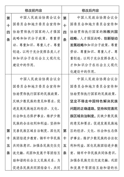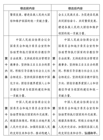 中國人民政治協(xié)商會(huì)議章程修改前后內(nèi)容對照表