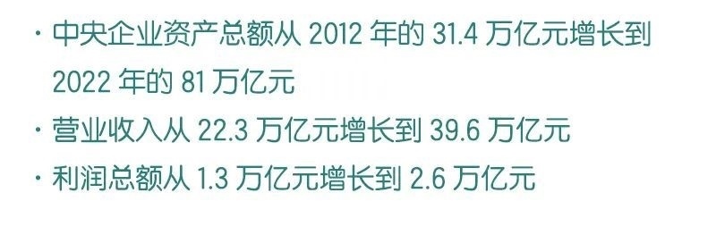 “新時代10年,國資央企發(fā)生了根本性、轉折性、全局性的重大變化”“國有企業(yè)和市場經濟更好地實現了融合,打造了一批現代新國企”“中央企業(yè)資產總額從2012年的31.4萬億元增長到2022年的81萬億元”……國新辦日前舉行的一場新聞發(fā)布會,傳遞出一系列令人振奮的消息。