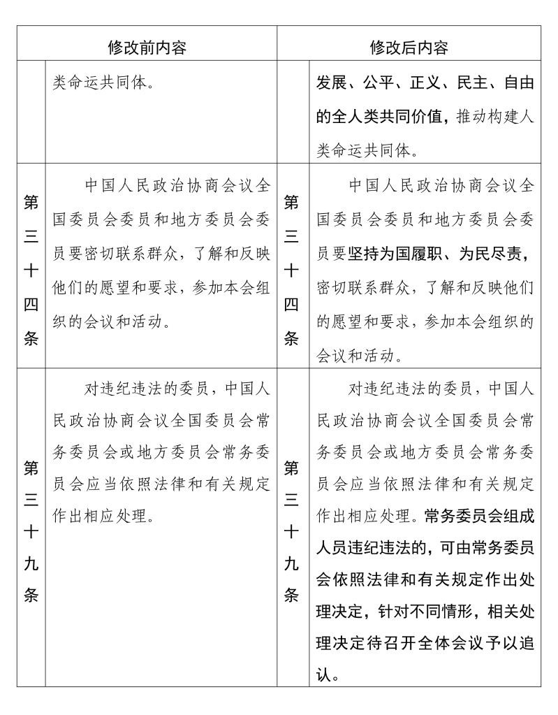 中國(guó)人民政治協(xié)商會(huì)議章程 修改前后內(nèi)容對(duì)照表(10) 新華社發(fā)