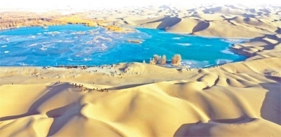 策勒縣沙海碧湖風(fēng)景區(qū)。阿卜力米提·買提沙依木攝(人民視覺)