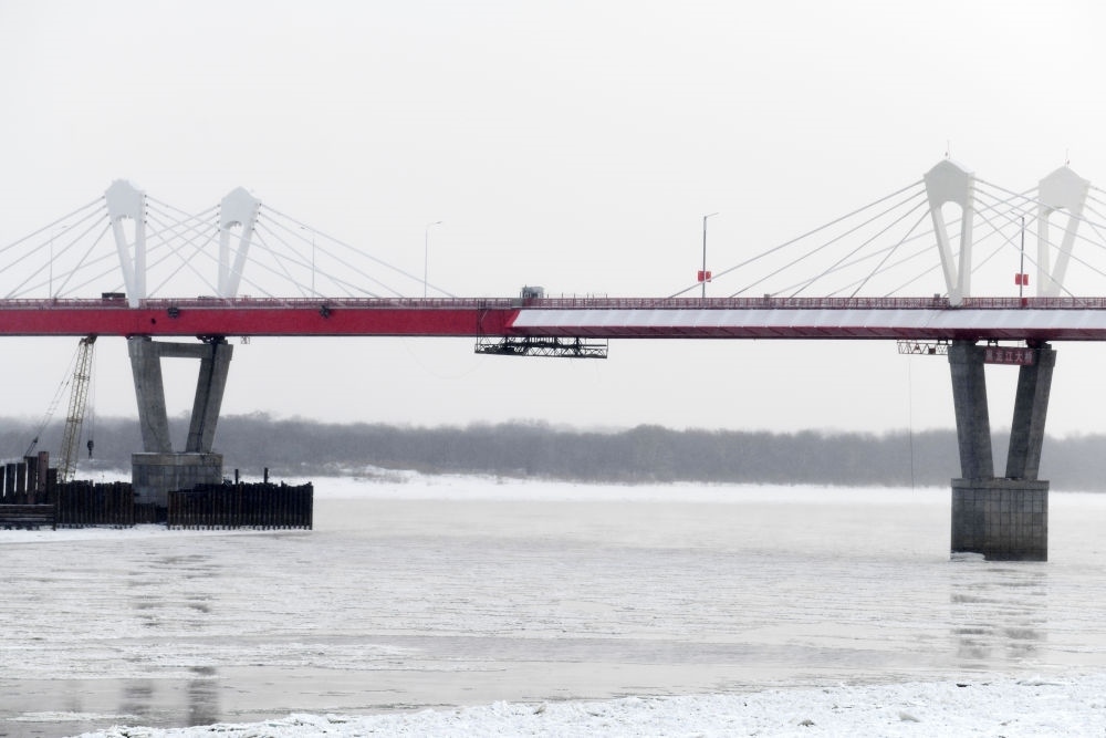 ↑這是中俄首座跨黑龍江公路大橋黑河-布拉戈維申斯克公路橋。這座大橋是兩國(guó)元首共同關(guān)心推動(dòng)的重大跨境基礎(chǔ)設(shè)施項(xiàng)目,它的開通在中國(guó)東北地區(qū)和俄羅斯遠(yuǎn)東地區(qū)之間開辟新的國(guó)際運(yùn)輸通道,成為中俄跨境互聯(lián)互通建設(shè)的標(biāo)志。