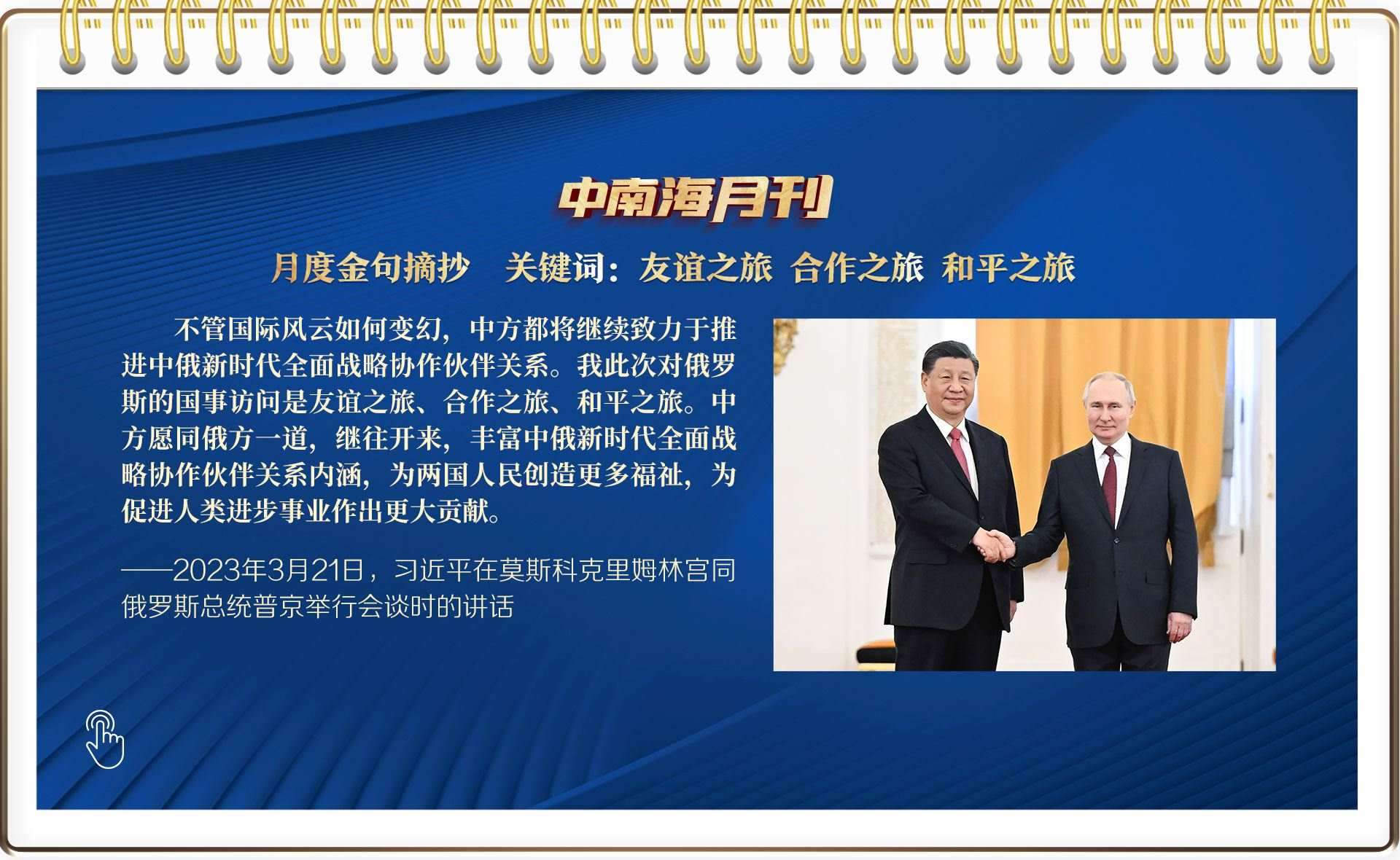 央視網(wǎng)《中南海月刊》運(yùn)用智能大數(shù)據(jù),與您一起回顧習(xí)近平總書記3月份繁忙的工作和講話,感受我們共和國前進(jìn)掌舵者、人民幸福領(lǐng)路人赤誠的為民情懷和天下胸懷。