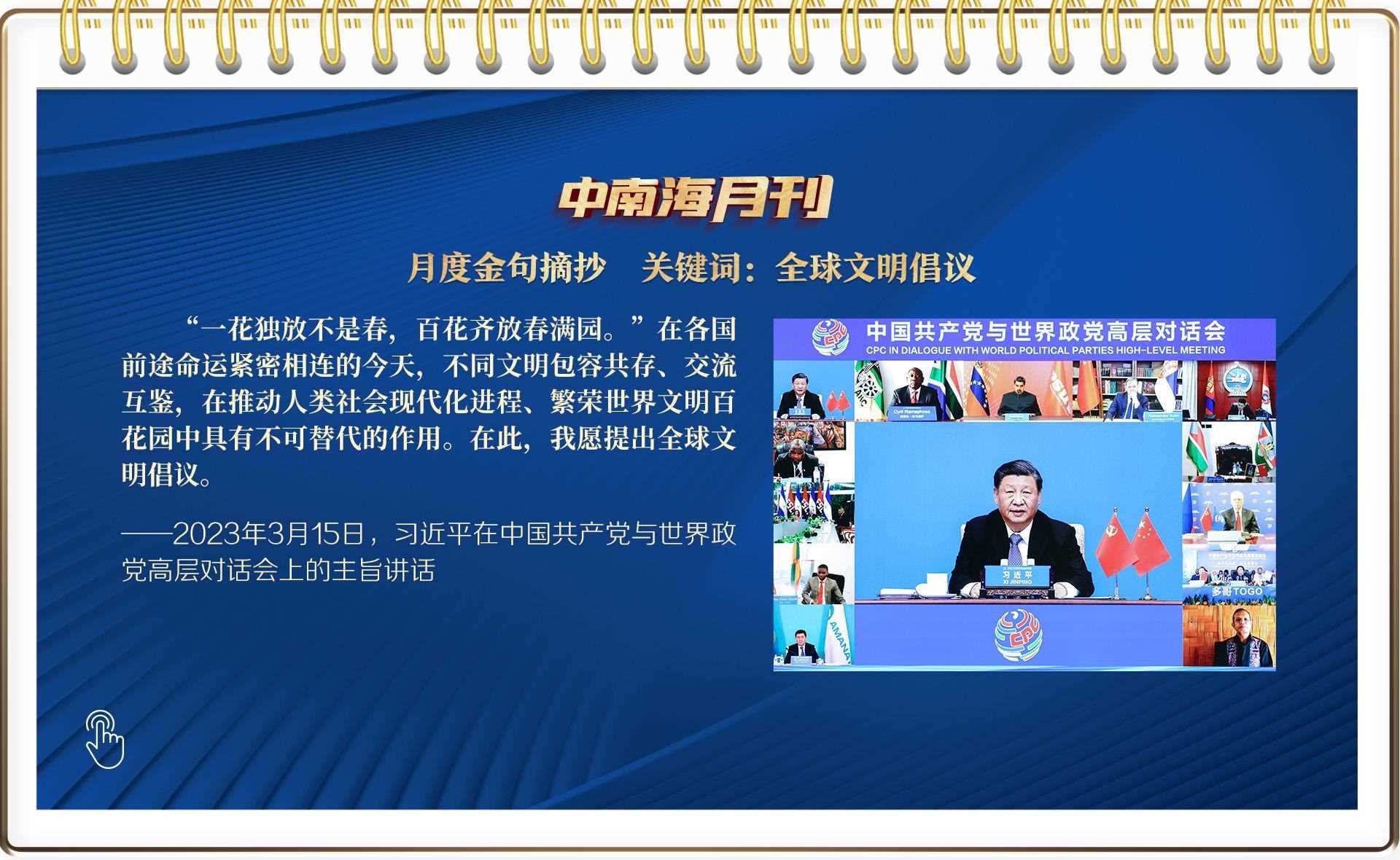 帶著對人類文明過去、現(xiàn)在和未來的深邃思考,習(xí)近平總書記在本月舉辦的全球性政黨盛會上,以四個(gè)“共同倡導(dǎo)”為實(shí)現(xiàn)路徑,鄭重提出全球文明倡議。繼全球發(fā)展倡議、全球安全倡議之后,這一中國智慧再次引發(fā)全球共鳴。