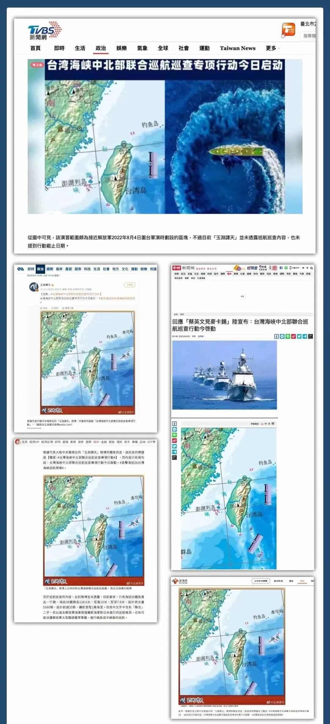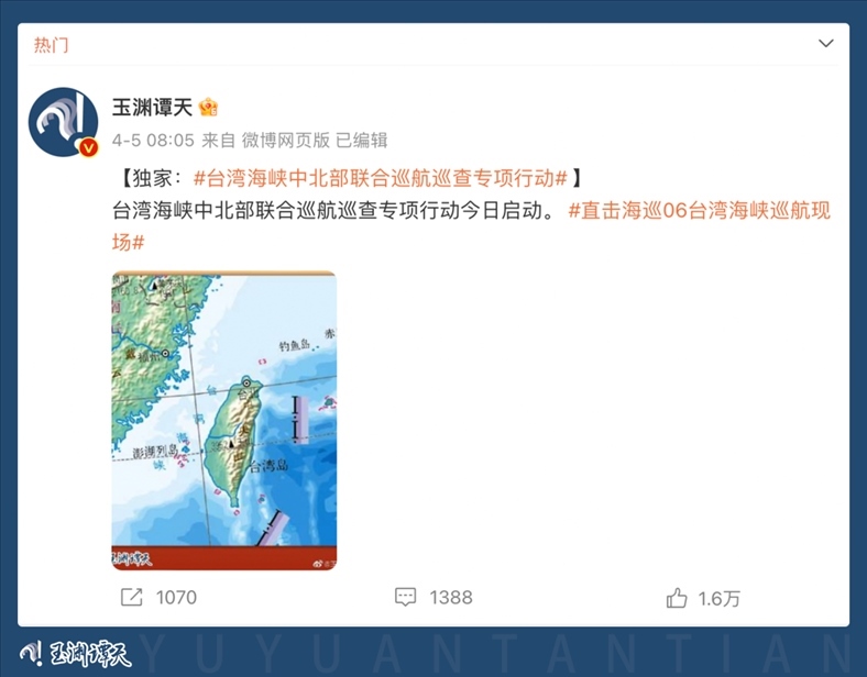 多家主流媒體轉發(fā)引用,消息瞬間傳遍全網(wǎng)。90余家臺灣媒體多平臺轉發(fā),揣測此次巡航活動及玉淵譚天配圖釋放的信號。臺當局就此消息進行緊急回應,美國之音也撰文評論。