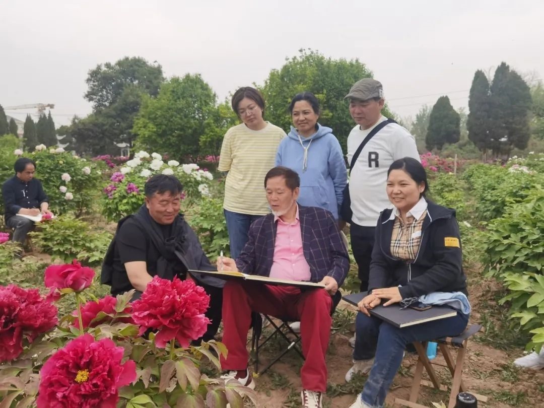 自1975年29歲的何水法先生以赤子之心,首次只身赴菏澤,48年來,為畫牡丹,寫其牡丹之真情、寫其牡丹之風(fēng)骨,寫其國花繁榮富強之真諦。用何水法先生世紀之初所言:“寫生是畫家與生活的對話”。藝術(shù)家也要不斷地站在時代的前列,站在歷史的高位,不斷思索,不斷地刷新繪畫語言。要緊隨時代發(fā)展的需要,不斷突破新題材、突破新意境。因此他今年又親率眾學(xué)生第十五次來菏澤深入考察,發(fā)揮示范引領(lǐng)作用,體驗生活、開闊思維,為謳歌人民、謳歌新時代,進行新的藝術(shù)創(chuàng)造。