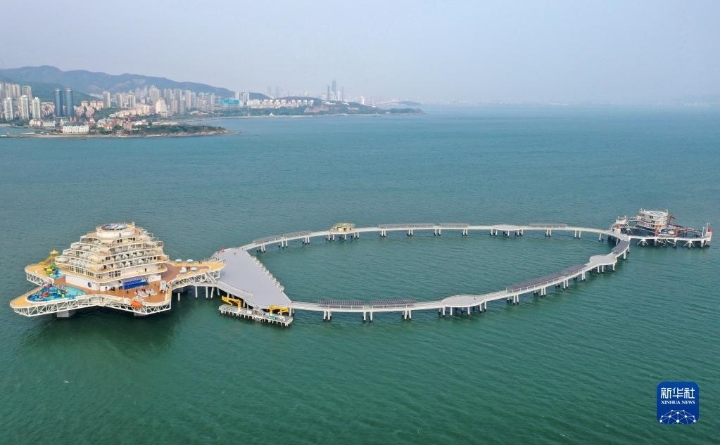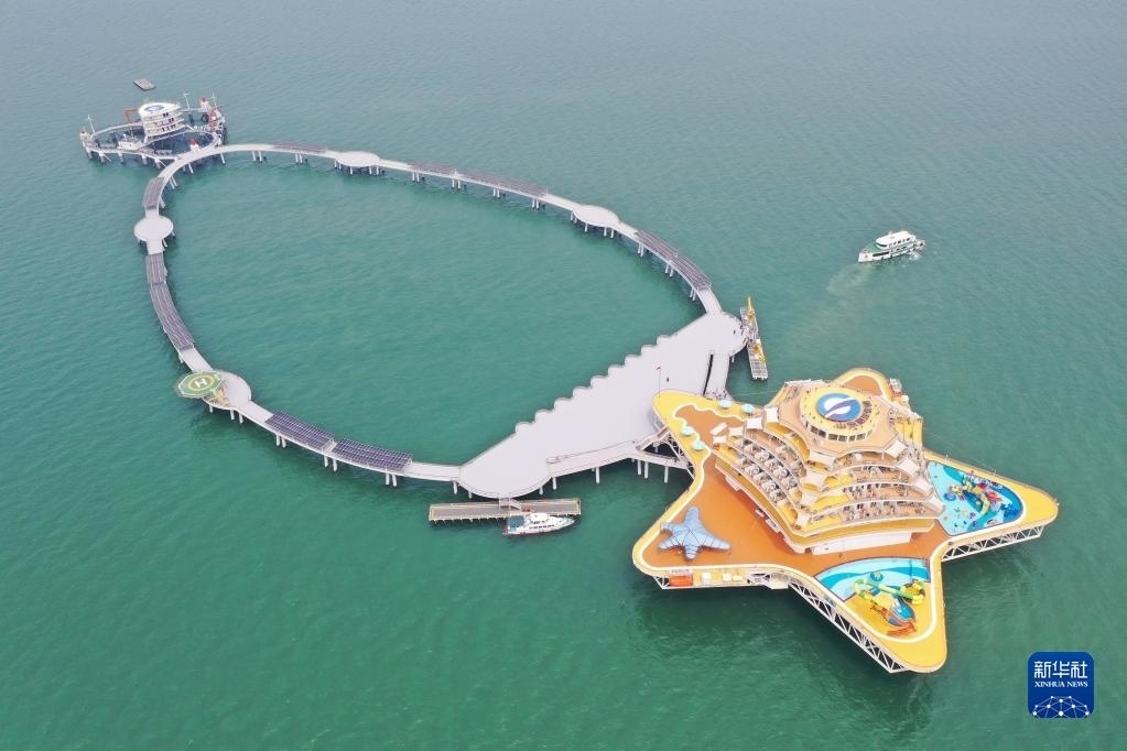 當日,位于山東省煙臺市萊山區(qū)的“耕海1號”海洋牧場綜合體二期項目投入運營。“耕海1號”集漁業(yè)養(yǎng)殖、海上觀光、休閑垂釣、餐飲住宿、科研科普等于一體,創(chuàng)新性實現(xiàn)現(xiàn)代海洋漁業(yè)、海洋工程技術(shù)和海洋文化旅游產(chǎn)業(yè)深度有機融合。新華社記者 李紫恒 攝