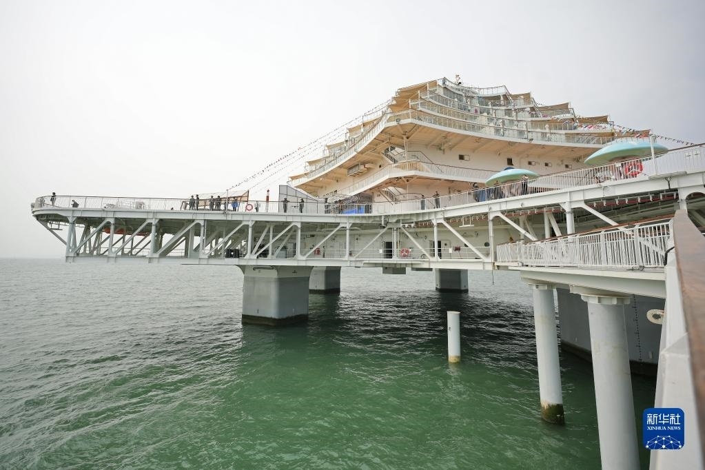 當日,位于山東省煙臺市萊山區(qū)的“耕海1號”海洋牧場綜合體二期項目投入運營?!案?號”集漁業(yè)養(yǎng)殖、海上觀光、休閑垂釣、餐飲住宿、科研科普等于一體,創(chuàng)新性實現(xiàn)現(xiàn)代海洋漁業(yè)、海洋工程技術(shù)和海洋文化旅游產(chǎn)業(yè)深度有機融合。新華社記者 李紫恒 攝