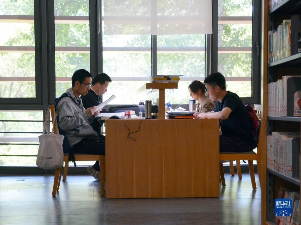 4月29日,在北京外國語大學圖書館,學生們利用假期讀書“充電”。