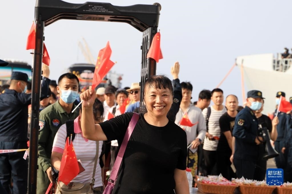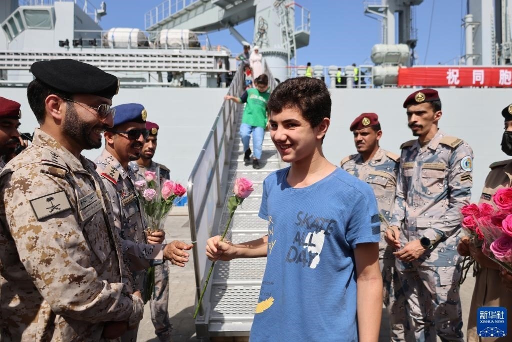 4月29日,從蘇丹撤離的中國公民乘坐中國海軍微山湖艦抵達沙特阿拉伯吉達港。新華社記者 王海洲 攝