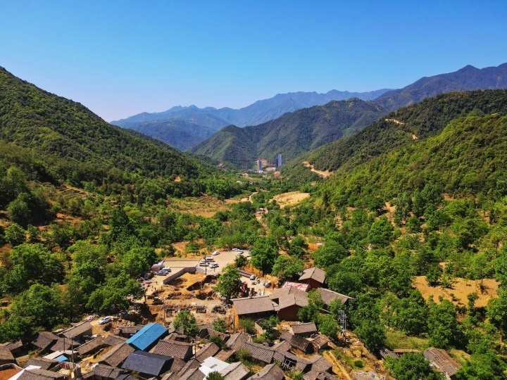 正值“五一”假期,潮新聞?dòng)浾咦哌M(jìn)了八一村,沿著一條新修的水泥路在大山中蜿蜒穿行,一棵棵花椒樹點(diǎn)綴在成片的茶園梯田里,目之所及皆綠意盎然。村民們正埋頭在茶地里澆水灌溉,工人們則忙碌地搬磚運(yùn)土,一個(gè)個(gè)精美的民宿小屋呼之欲出——未來,這里將變成一個(gè)以民宿、旅游綜合體為主的航天文旅村。