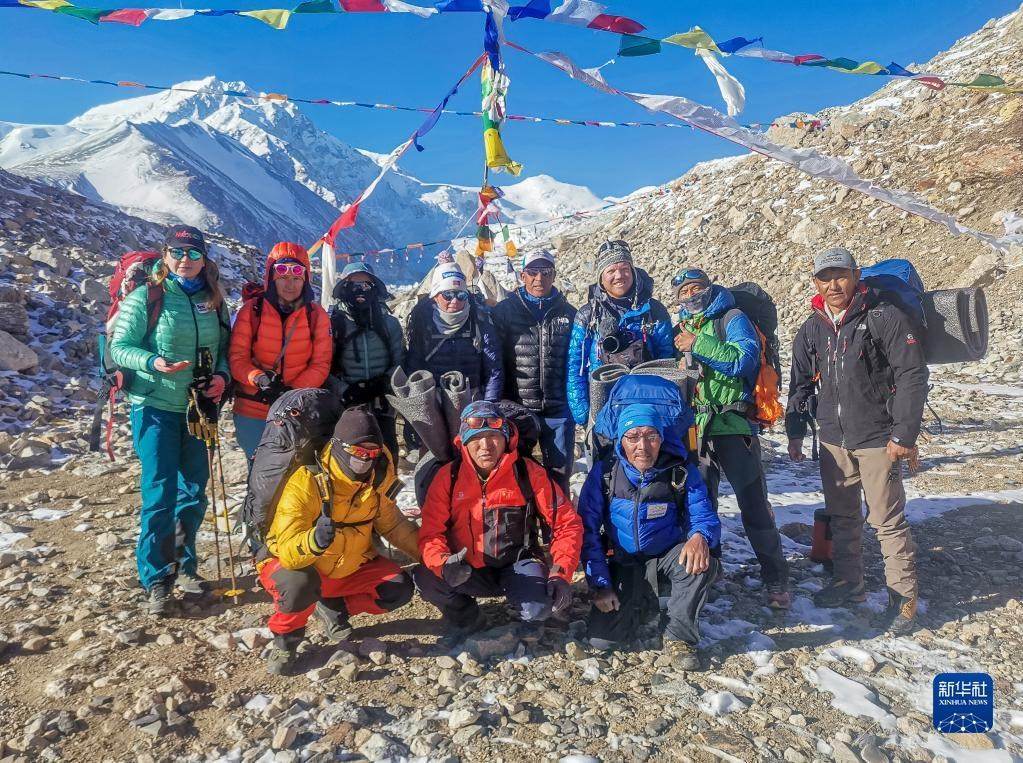 董紅娟(后排左三)在開始攀登希夏邦馬峰前與隊友合影留念(4月23日攝)。新華社發(fā)(頓巴 攝)