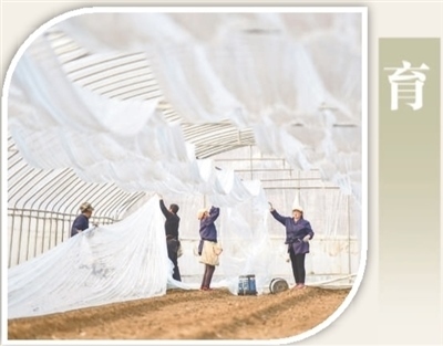 山東省青州市益都街道北河?xùn)|村一處蔬菜育種試驗(yàn)基地內(nèi),工人在準(zhǔn)備蔬菜繁殖所需的保溫膜。王繼林?jǐn)z(影像中國)