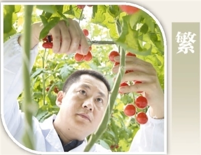 江蘇省昆山市陸家鎮(zhèn)未來農(nóng)業(yè)示范園中,技術(shù)人員在采摘新選育出的西紅柿品種。許叢軍攝(人民視覺)