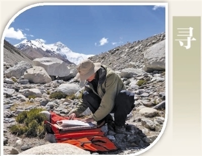 中國科學(xué)院昆明植物研究所中國西南野生生物種質(zhì)資源庫采集員在珠峰大本營采集種子標(biāo)本。蔡 杰攝(人民視覺)