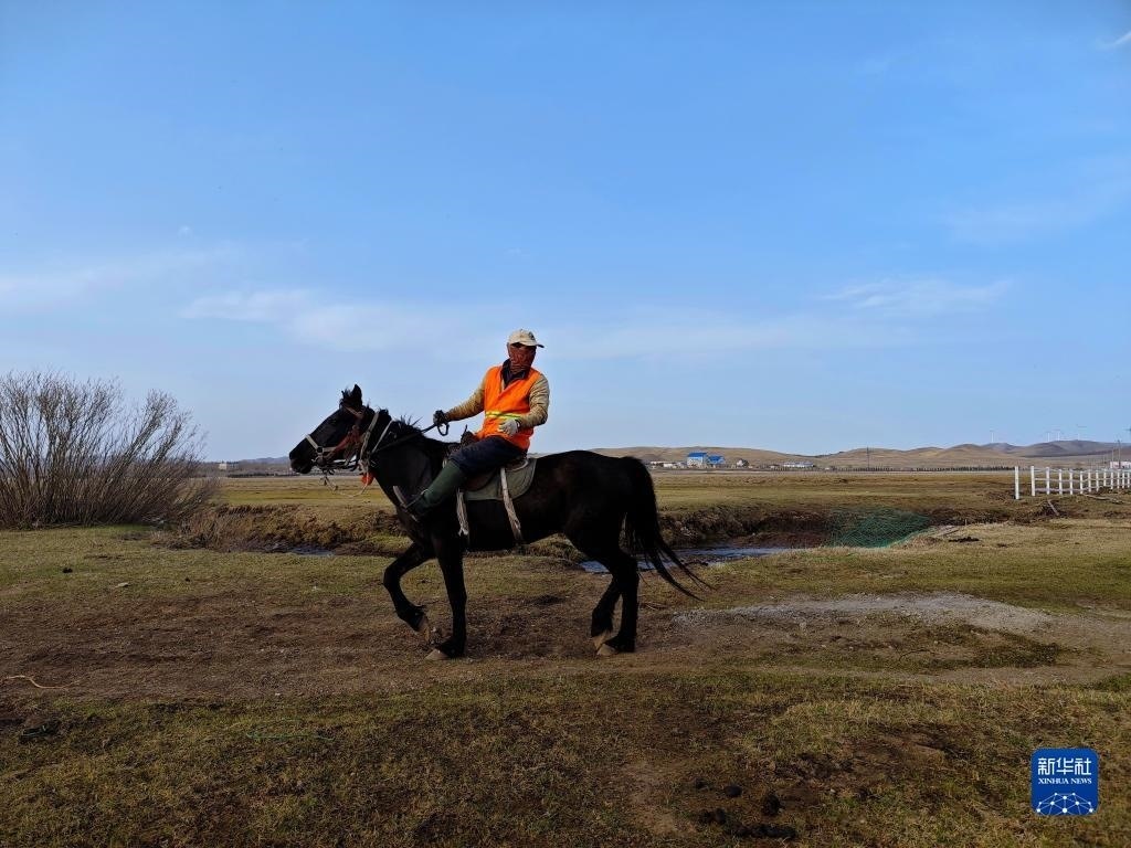 5月2日,河北省承德市豐寧滿族自治縣大灘鎮(zhèn)扎拉營(yíng)村的護(hù)林員在海留圖國(guó)家濕地公園巡邏。
