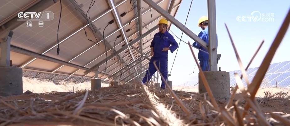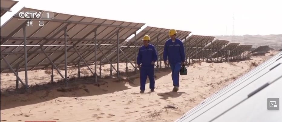 央視網(wǎng)消息:在寧夏中衛(wèi)市騰格里沙漠里,成千上萬塊藍色光伏板整齊排列,隨著太陽的運轉逐日追光,每年可以發(fā)電17億度。這里的工作人員被稱為“追日人”?!拔逡弧奔倨?,他們依然堅守在工作崗位上。