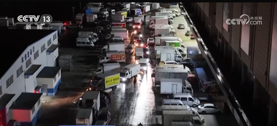 凌晨2點(diǎn)多,市場交易進(jìn)入高峰期,進(jìn)出停車場的貨車也出現(xiàn)了短暫的擁堵??拷ǖ篮统鋈肟诘狞S金地點(diǎn),客流更大、貨更好賣,大家都想搶占。劉輕舟的工作就是讓各種車輛都能最快速地停到規(guī)定區(qū)域,要看先來后到,還要兼顧品種貨區(qū)。