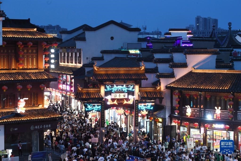 “五一”小長假期間,各地假日文旅市場活躍,“夜經濟”為游客帶來精彩體驗。新華社發(fā)(趙慶祖攝)