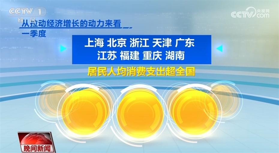 此外,各地經(jīng)濟(jì)發(fā)展也呈現(xiàn)回升向好態(tài)勢(shì)。目前,全國31個(gè)?。▍^(qū)、市),已經(jīng)全部公布一季度的經(jīng)濟(jì)運(yùn)行數(shù)據(jù)。從GDP增速來看,31個(gè)?。▍^(qū)、市)中有23個(gè)省份跑贏全國一季度GDP平均增速4.5%,從地區(qū)GDP總量看,有12個(gè)省份超1萬億,廣東超過了3萬億。從拉動(dòng)經(jīng)濟(jì)增長的動(dòng)力來看,一季度,上海、北京、浙江、天津、廣東、江蘇、福建、重慶、湖南9省份,居民人均消費(fèi)支出超全國。