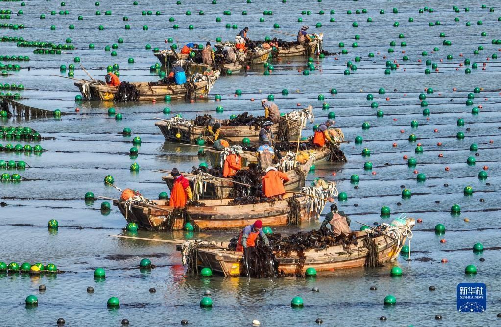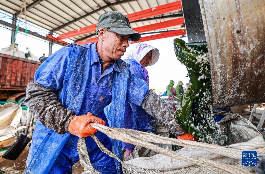 山東省榮成市被譽為“中國海帶之鄉(xiāng)”,海帶年產量43萬噸,其中鹽漬海帶近26萬噸,產品暢銷國內外市場。新華社發(fā)(李信君 攝)