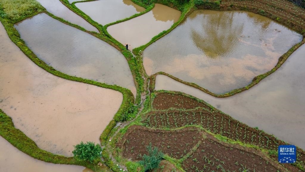 5月6日拍攝的貴州省從江縣加榜鄉(xiāng)加車(chē)村的梯田(無(wú)人機(jī)照片)。