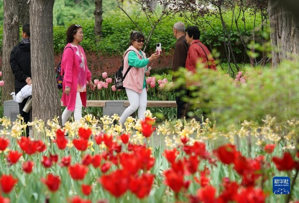 近日,山西省太原市迎澤公園內(nèi)各色郁金香競(jìng)相綻放,吸引游人前來(lái)觀花賞景。新華社記者 詹彥 攝