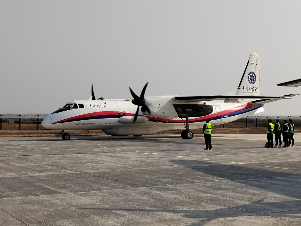 探測實(shí)驗(yàn)中使用的新舟60遙感飛機(jī)。(中科院空天院供圖)