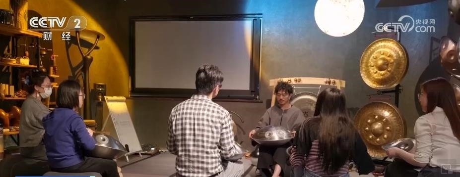 傳統(tǒng)小店被賦予了新場(chǎng)景的同時(shí),一些新奇有趣的業(yè)態(tài)也找到了生存的土壤。晚上7點(diǎn)30分,在上海長(zhǎng)寧區(qū)的一個(gè)寫字樓里,一場(chǎng)手碟培訓(xùn)課正在進(jìn)行中。席地而坐的竹席、深灰色的墻面和月球燈營(yíng)造出治愈沉靜的氣氛,手碟空靈的聲音不時(shí)響起。