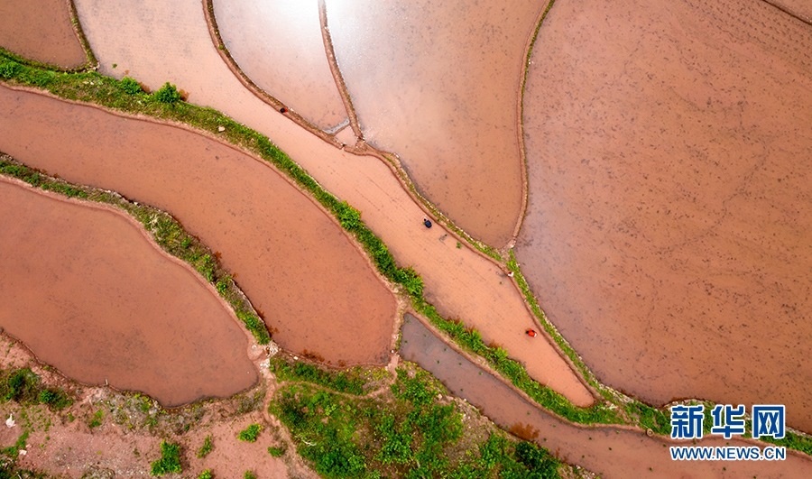 初夏,重慶市巫山縣廟宇鎮(zhèn)迎來農(nóng)忙時節(jié)。一場雨后,當(dāng)?shù)剞r(nóng)戶抓緊時間施肥、插秧。新華網(wǎng)發(fā)(朱云平 攝)