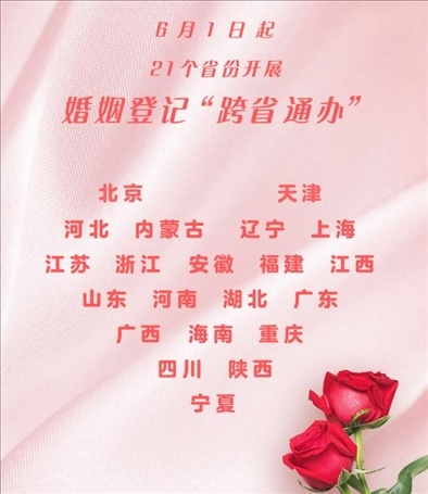 ·2023年6月1日起,21個(gè)省份婚姻登記可“跨省通辦”。