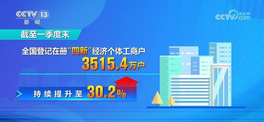 近年來,隨著新技術(shù)、新產(chǎn)業(yè)、新業(yè)態(tài)、新模式的蓬勃發(fā)展,網(wǎng)絡(luò)直播、微商電商等“新個(gè)體經(jīng)濟(jì)”不斷涌現(xiàn),為我國經(jīng)濟(jì)轉(zhuǎn)型升級(jí)注入了新的活力。截至一季度末,全國登記在冊(cè)“四新”經(jīng)濟(jì)個(gè)體工商戶3515.4萬戶,總量占比由2019年的24.9%持續(xù)提升至30.2%。