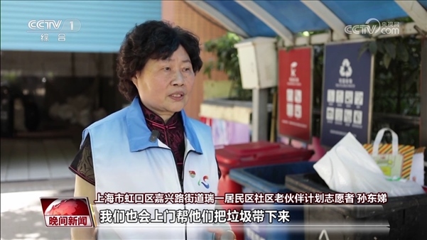 上海市虹口區(qū)嘉興路街道瑞一居民區(qū)社區(qū)老伙伴計(jì)劃志愿者 孫東娣:就是有些老人腿腳不方便,我們也會(huì)上門(mén)幫他們把垃圾帶下來(lái),也會(huì)跟他們講一些這方面的知識(shí)。