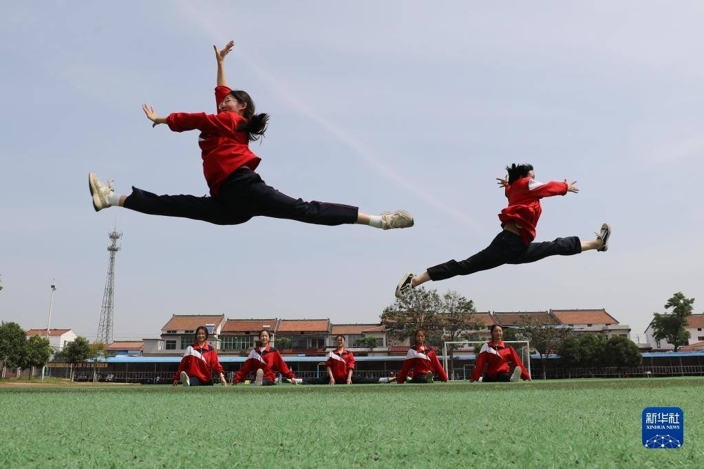 5月23日,河南省焦作市溫縣實驗高中高三學(xué)生在操場上做活動減壓。