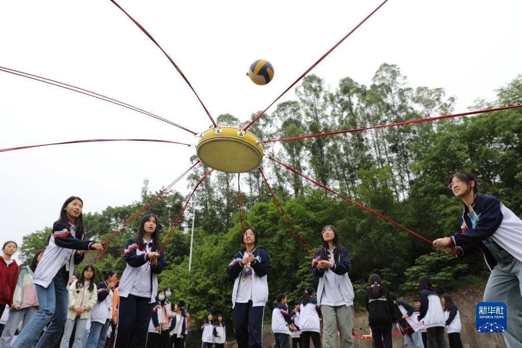 5月24日,在貴州省黔東南苗族侗族自治州岑鞏縣第一中學(xué),高三學(xué)生在足球場上做游戲減壓。