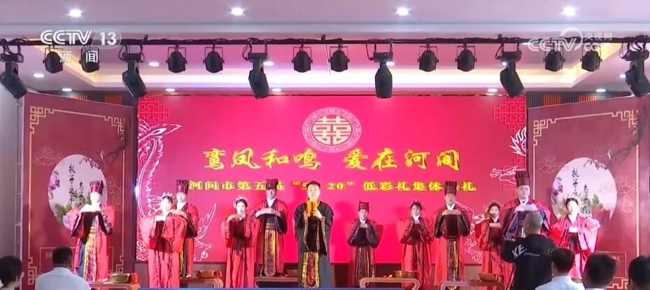 在江西貴溪、山東巨野等地,五月份組織了多場(chǎng)主題為“不要彩禮要幸?!钡募w婚禮,倡導(dǎo)新人們選擇簡(jiǎn)約的婚禮儀式。在河北省河間市的集體婚禮現(xiàn)場(chǎng),紅毯艷艷、絲竹裊裊,新人們身著傳統(tǒng)禮服,在證婚人、主婚人的見(jiàn)證下,按照周制漢婚的傳統(tǒng)儀式開(kāi)啟他們愛(ài)的旅程。