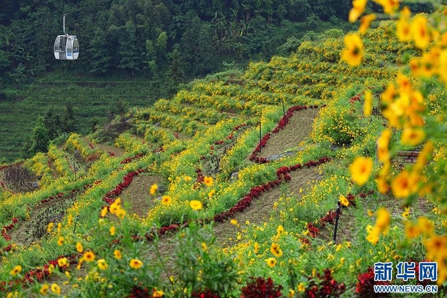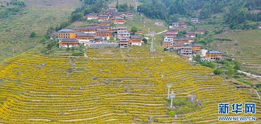 5月,在廣西桂林市龍勝縣泗水鄉(xiāng),近千畝連綿一片的布尼梯田已花開(kāi)成海,絢麗多彩的花海梯田吸引游客前來(lái)打卡拍照。 (伍春媛)