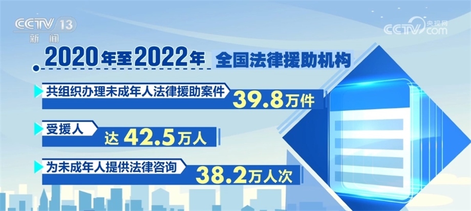 司法部相關(guān)負(fù)責(zé)人在發(fā)布會(huì)上介紹,2020年,司法部印發(fā)《未成年人法律援助服務(wù)指引(試行)》,以專章形式規(guī)范了辦理性侵害未成年人法律援助案件的工作程序和服務(wù)標(biāo)準(zhǔn)。據(jù)統(tǒng)計(jì),2020年至2022年,全國(guó)法律援助機(jī)構(gòu)共組織辦理未成年人法律援助案件39.8萬件,受援人達(dá)42.5萬人,為未成年人提供法律咨詢38.2萬人次。