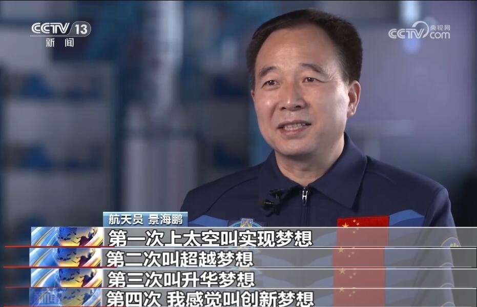 航天員 景海鵬:第一次上太空叫實現(xiàn)夢想,第二次叫超越夢想,第三次叫升華夢想,第四次,我感覺叫創(chuàng)新夢想。很感恩新時代,剛才說如果沒有這個偉大新時代,就不會有載人航天的連戰(zhàn)連捷;如果沒有這個偉大新時代,還夢想飛兩次飛三次飛四次,你想都不敢想,夢都夢不到。