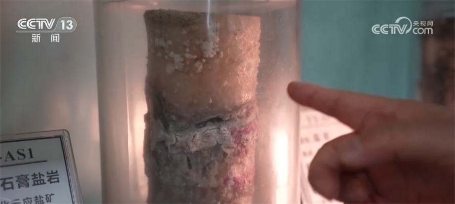 中國科學院武漢巖土力學研究所研究員 中國工程院院士 楊春和:這是我們從全國各地采回來的從800米到2000米不等深度下的巖心,上面你看這一塊是鹽,這么一點小薄的夾層是含泥的,這種夾層的界面是否會產(chǎn)生泄漏、對垮塌是否有影響。