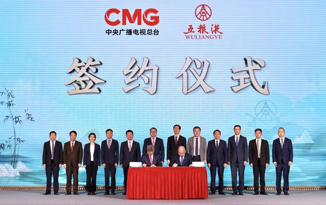 在彭健明、方存好、廖文彬、曾從欽以及總臺華語環(huán)球節(jié)目中心主任李欣雁,財經(jīng)節(jié)目中心副主任(主持工作)蔡俊,央視國際網(wǎng)絡有限公司董事長、央視頻融媒體發(fā)展有限公司總經(jīng)理過彤,四川總站副站長(主持工作)樊承志,四川總站副召集人鄭直,宜賓市副市長羅春濤,五糧液集團(股份)公司黨委副書記肖浩,五糧液股份公司總經(jīng)理助理、五糧液品牌事業(yè)部總經(jīng)理黃太國的共同見證下,總臺總經(jīng)理室副召集人徐立軍與五糧液股份公司副總經(jīng)理劉洋現(xiàn)場簽署了品牌建設戰(zhàn)略合作協(xié)議。