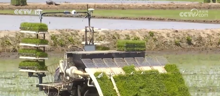 央視網(wǎng)消息:在全國重要的水稻生產(chǎn)基地——北大荒建三江,眼下,正是水稻插秧時節(jié)。天上北斗導航、手中遙控著無人機插秧,種植戶們感受到了智慧化種田的“樂趣”。