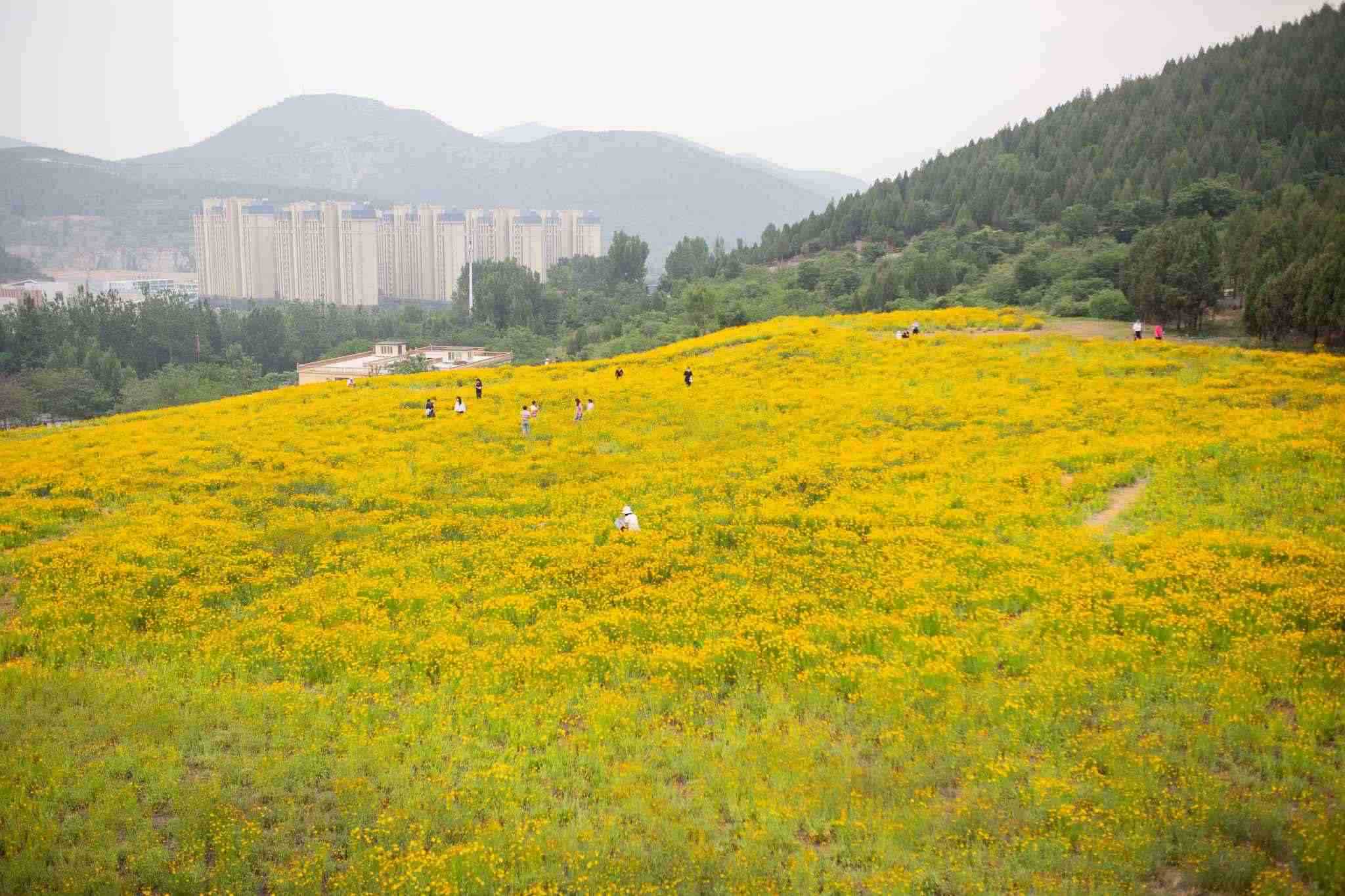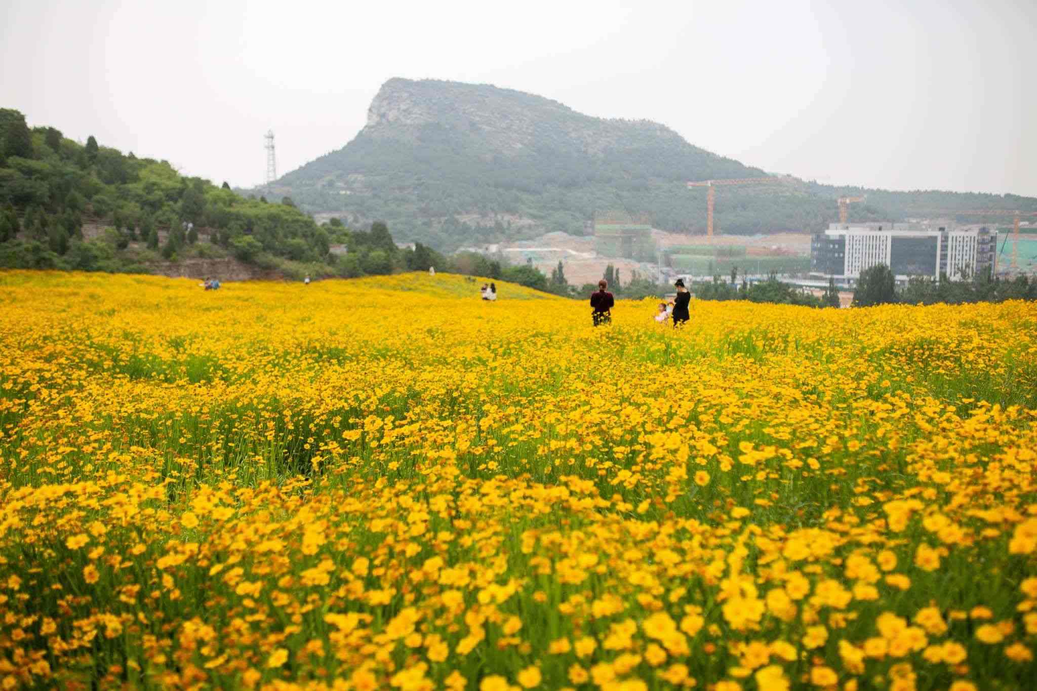 2023年5月26日,濟南蚰蜒山,山谷大片的金雞菊盛開,宛如一片黃色的花海。視覺中國