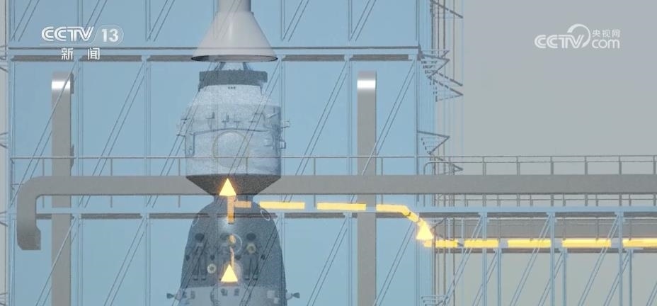 總臺(tái)央視記者 勞春燕:這個(gè)發(fā)射塔架就好像是一個(gè)100多米高的“鋼鐵巨人”。它有一個(gè)學(xué)名叫“臍帶塔”,為什么叫這個(gè)名字?因?yàn)樗芾镉懈鞣N線纜和管路,就像嬰兒的臍帶一樣,可以為火箭和飛船輸送能量與養(yǎng)分。另外,塔架還裝了空調(diào)和保溫層,可以為船箭創(chuàng)造一個(gè)合適的環(huán)境。有了它的全方位保護(hù),火箭適應(yīng)環(huán)境的能力大大提高,即使碰上零下20℃的極寒天氣依然可以正常發(fā)射。