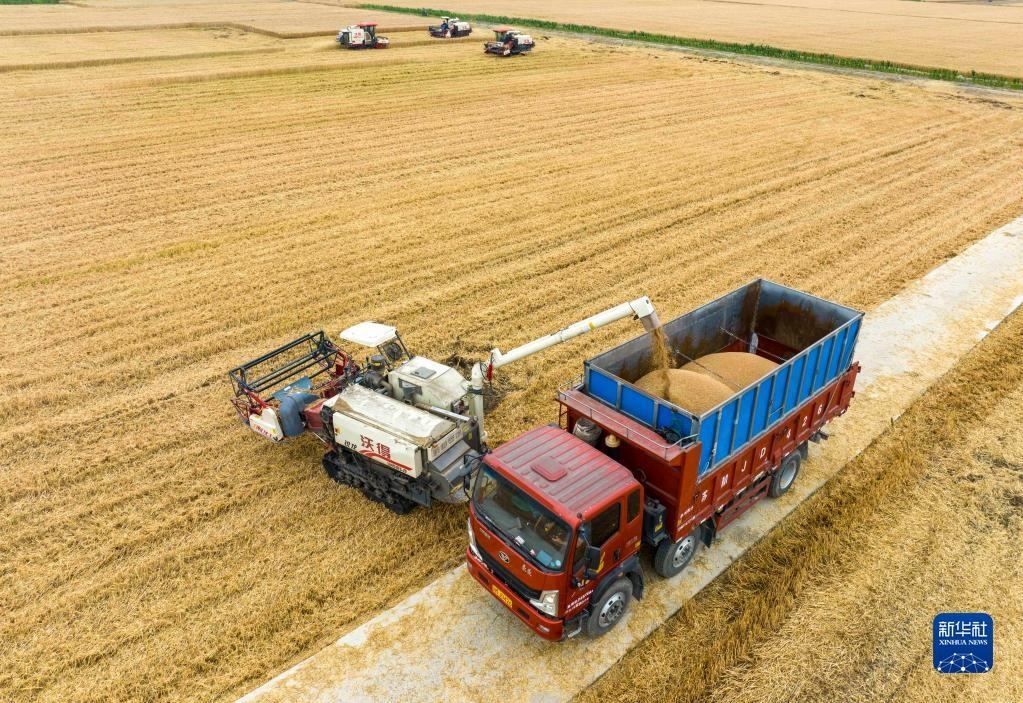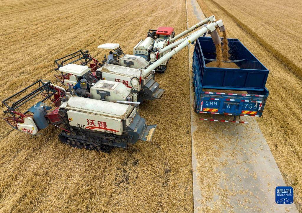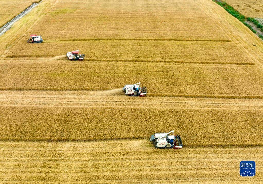 近日,江蘇省泰州市255萬(wàn)畝小麥陸續(xù)進(jìn)入收割期,當(dāng)?shù)剞r(nóng)民搶抓晴好天氣加緊收割。農(nóng)機(jī)在田間穿梭,構(gòu)成了一幅美麗的豐收?qǐng)D畫。