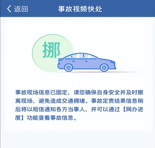 接警人員完成證據(jù)固定和信息采集后,"交管12123"APP將推送撤離事故現(xiàn)場(chǎng)提示信息,當(dāng)事人應(yīng)當(dāng)及時(shí)撤離,避免交通擁堵。