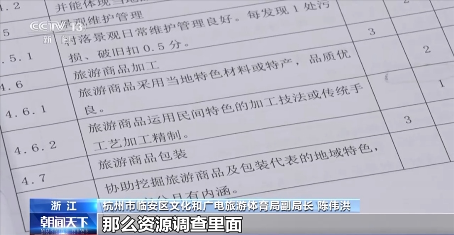 杭州市臨安區(qū)文化和廣電旅游體育局副局長 陳偉洪:資源調(diào)查是占三分,那么資源調(diào)查里面我們又要細(xì)分一下的,我們有要求,最起碼你這個(gè)村莊里面,比如說至少是(調(diào)查)60戶,這個(gè)是肯定的。
